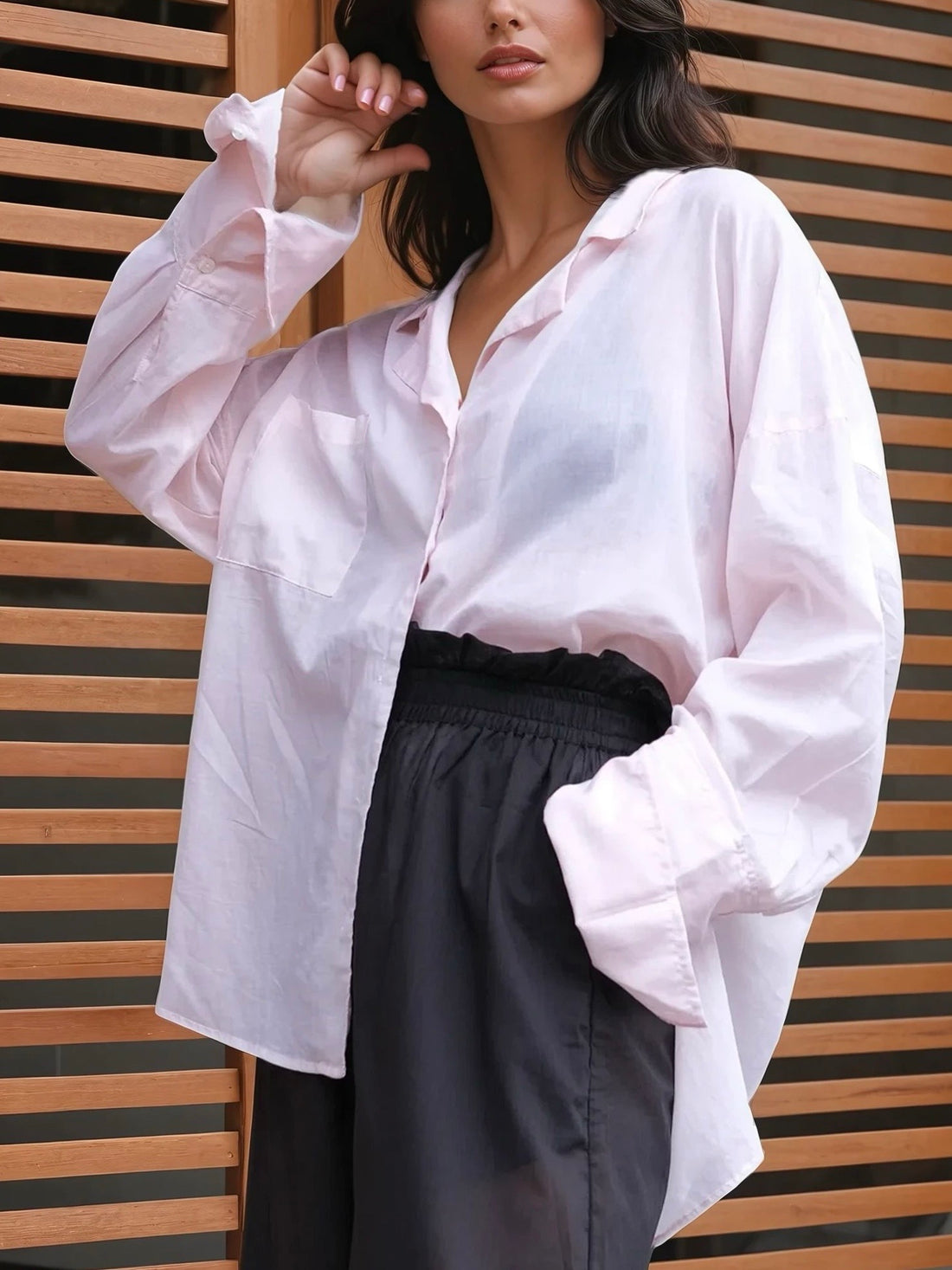Oversized Black Cotton Shirt This oversized pink cotton shirt is comfortable and practical. The straight...