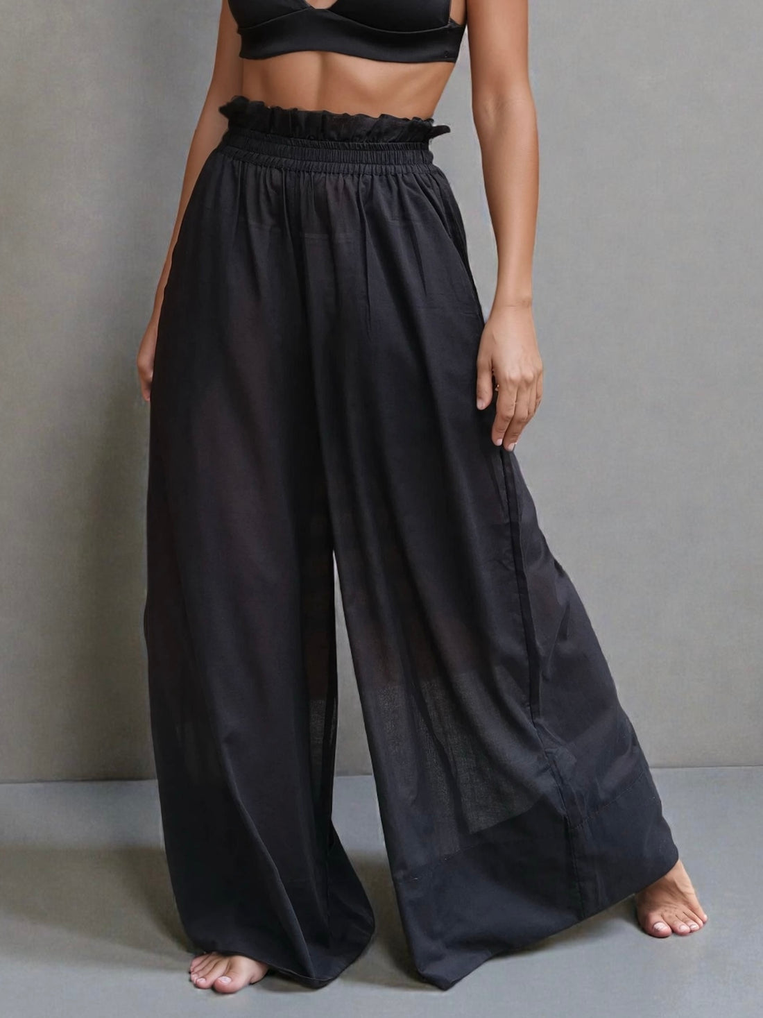 Pants Palazzo Sheer Cotton Black