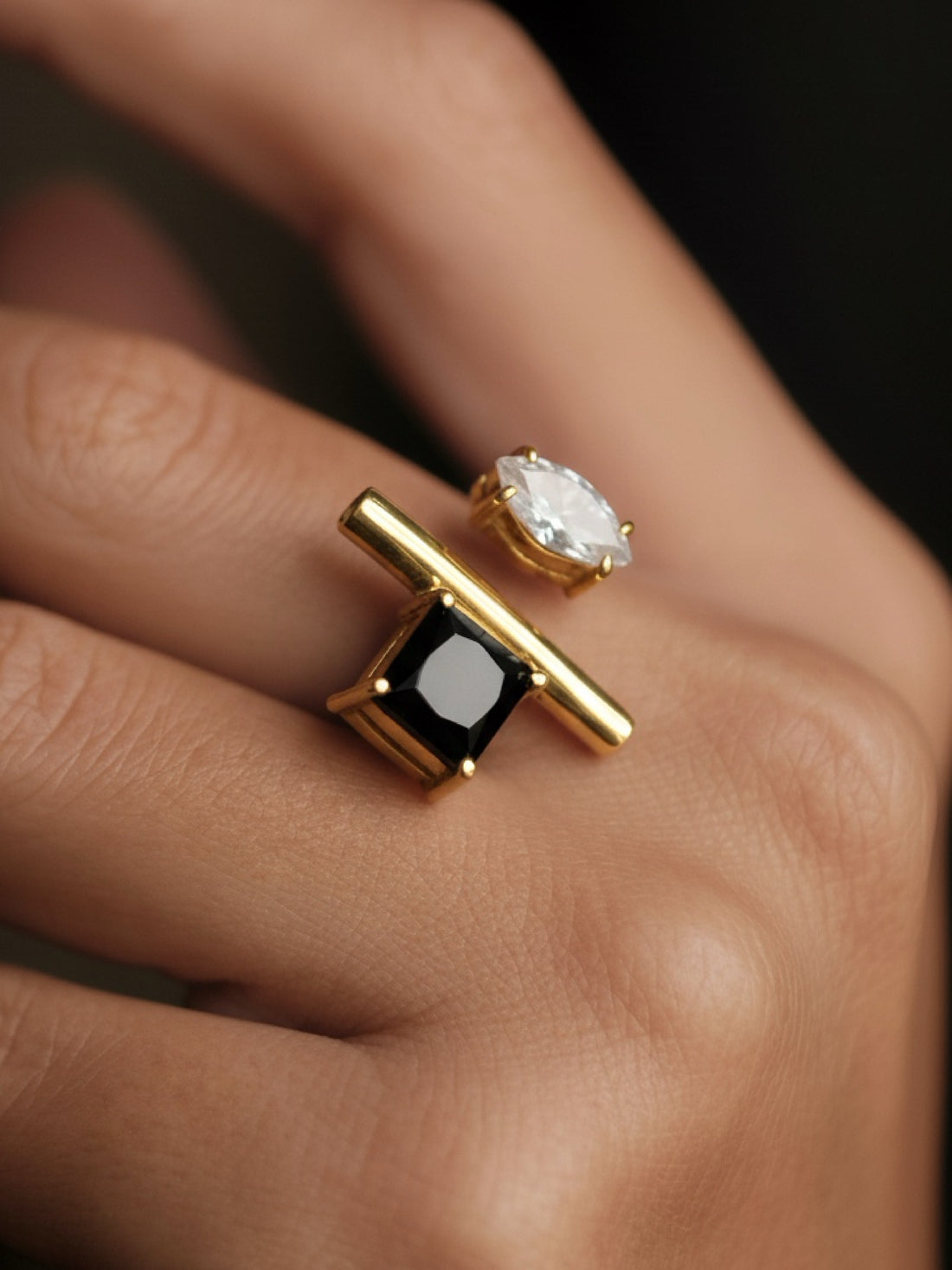 Elegant geometric ring with black Spinel. Adjustable size. Completely Handmade in Bali. 925 Sterling Silver...