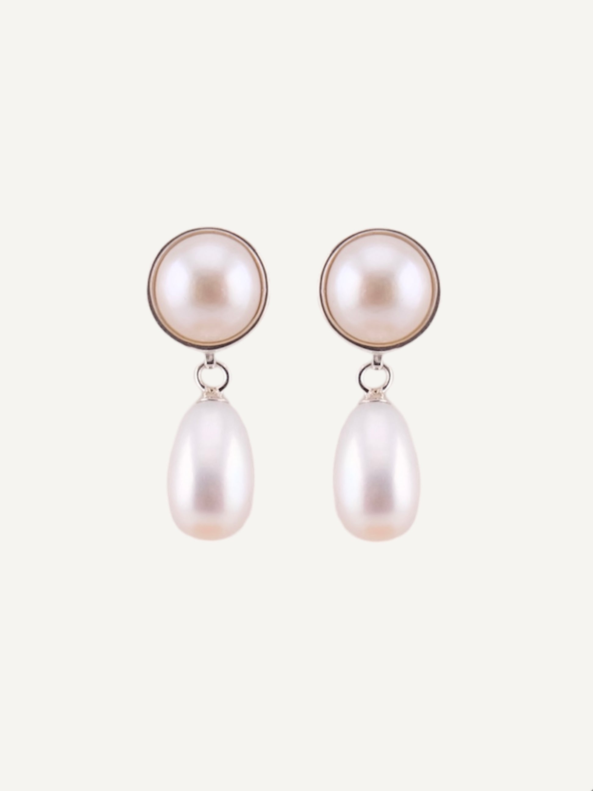 Circle/Drop Sterling Silver Earrings with Pearls.