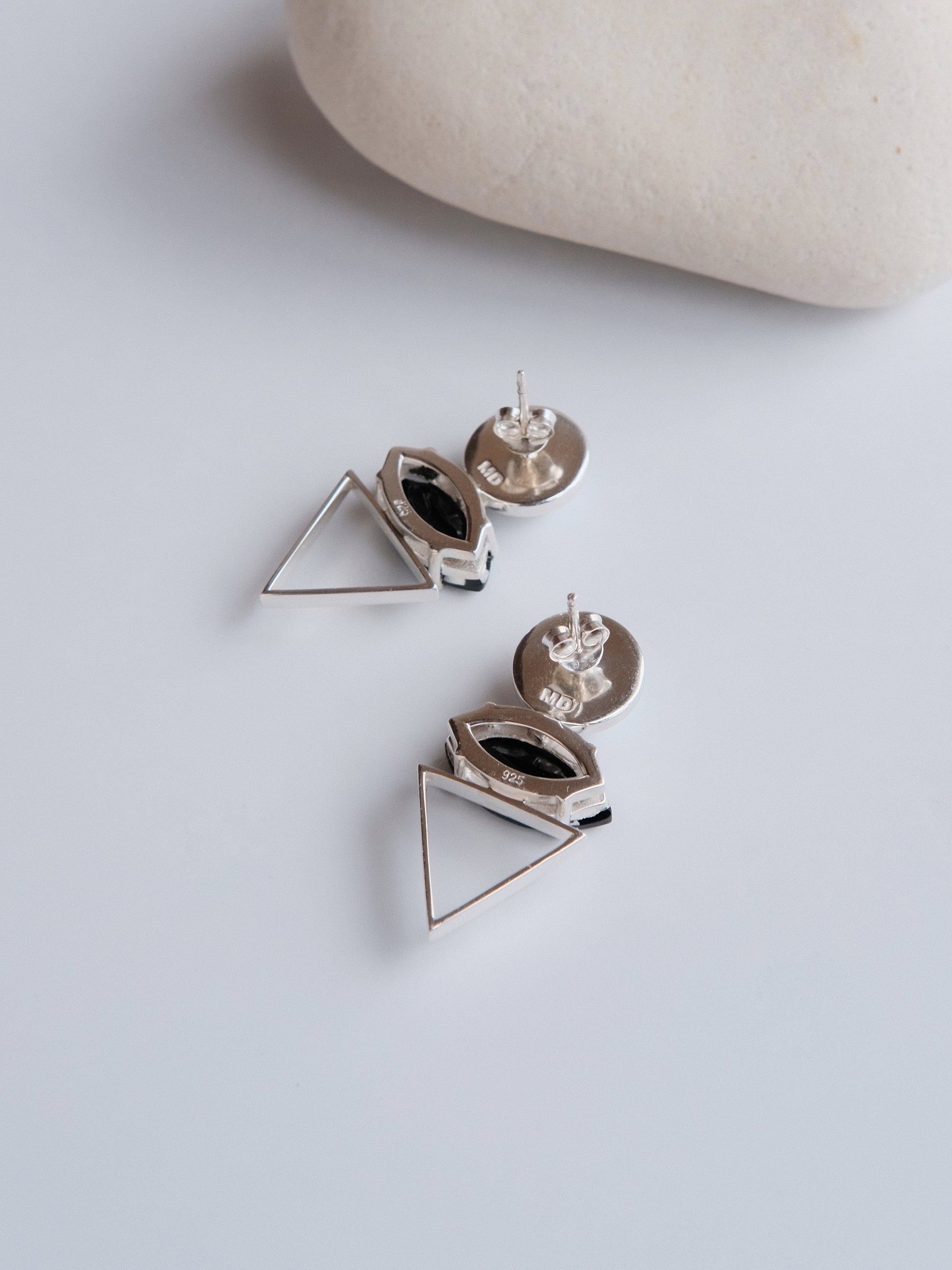 Elegant 925 Sterling Silver Earrings with Black Spinel and Pearl. Completely Handmade in Bali.
