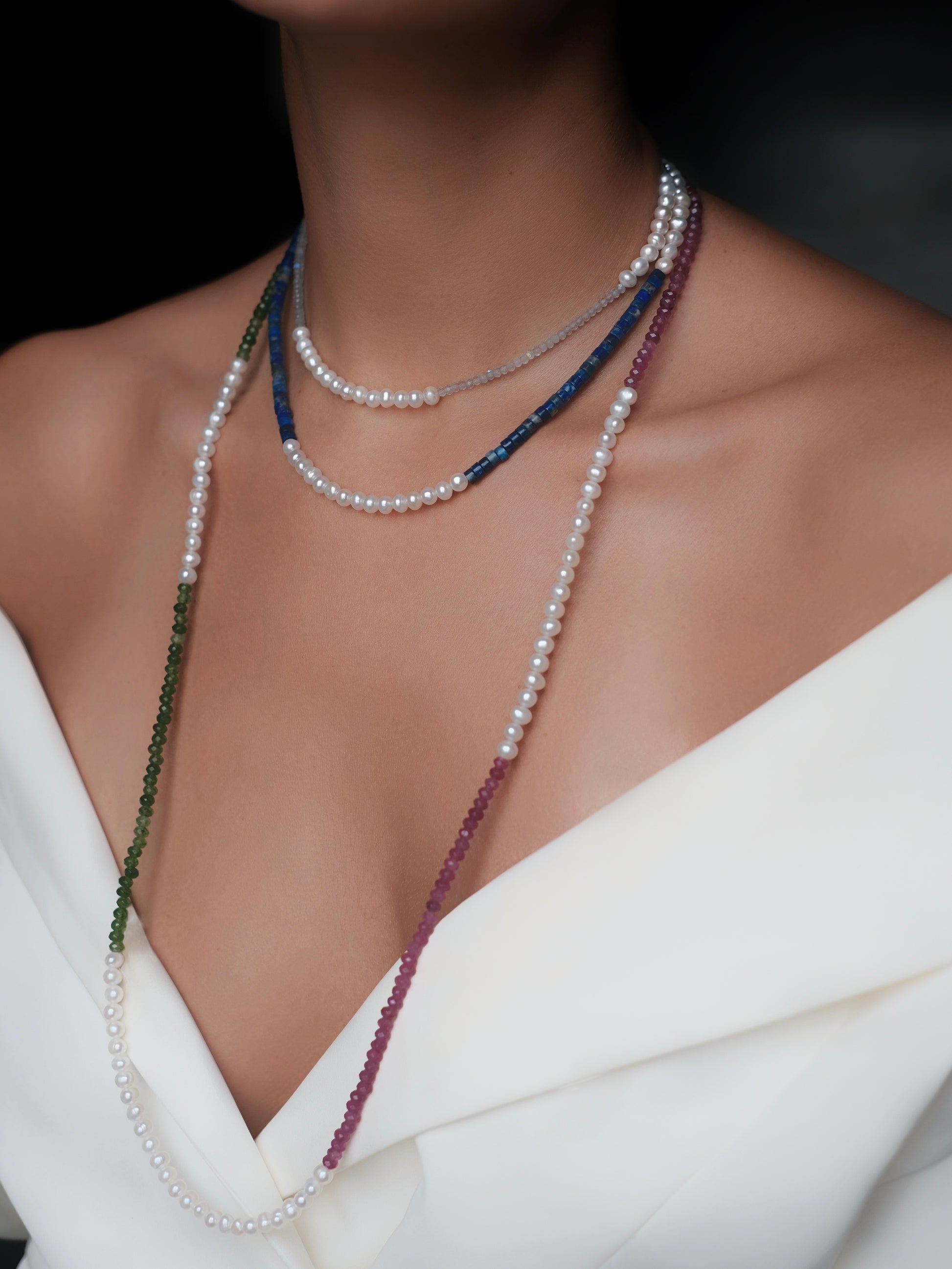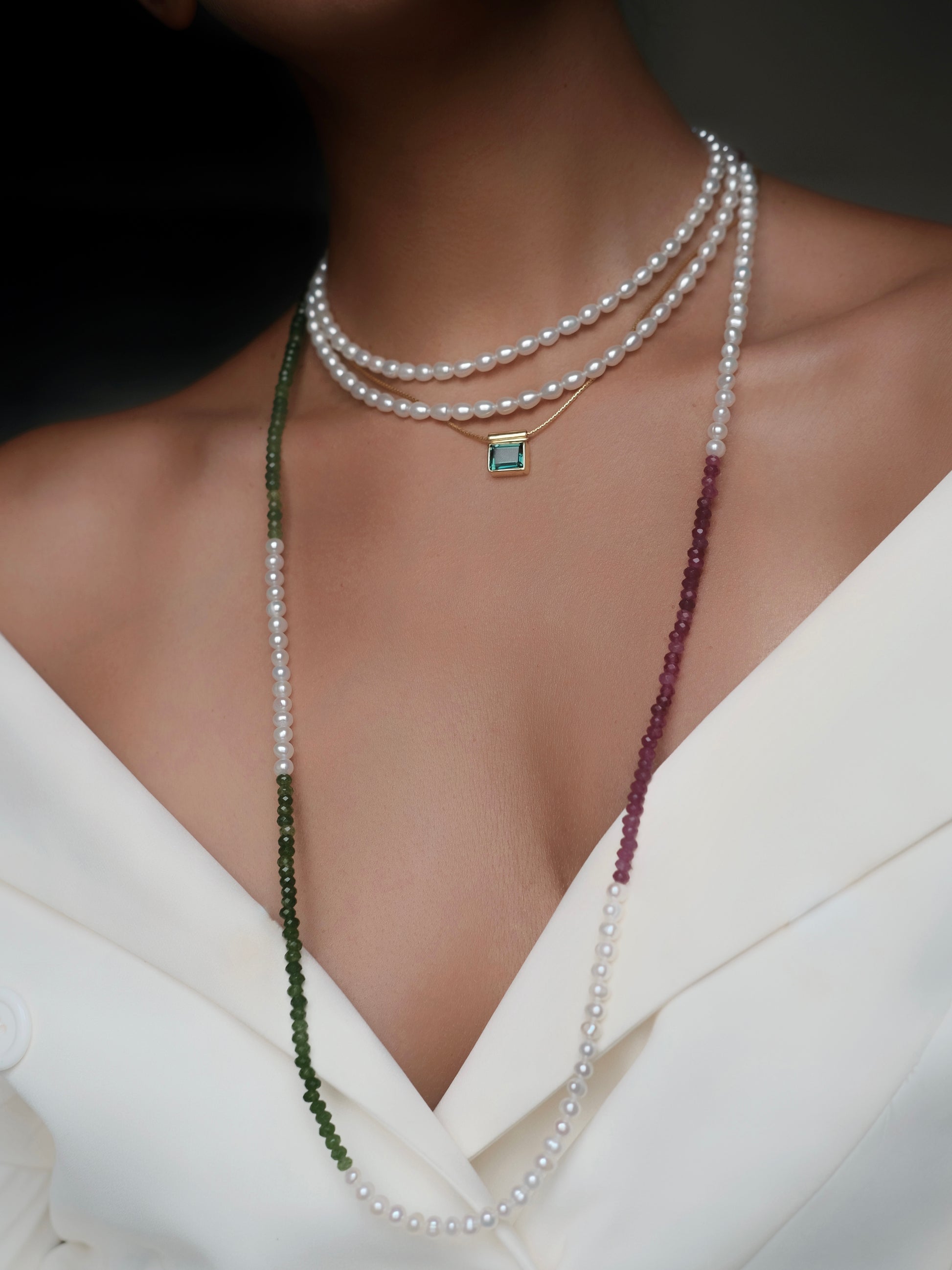 Sterling Silver Necklace with Tourmaline and Pearls. Handcrafted in Bali.