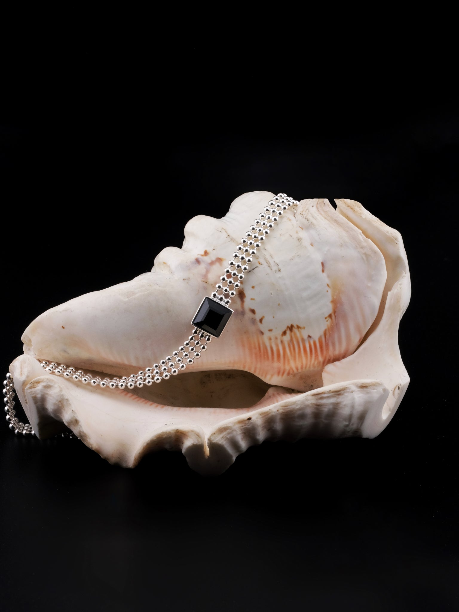 Elegant Sterling Silver Necklace/Choker with Black Spinel.