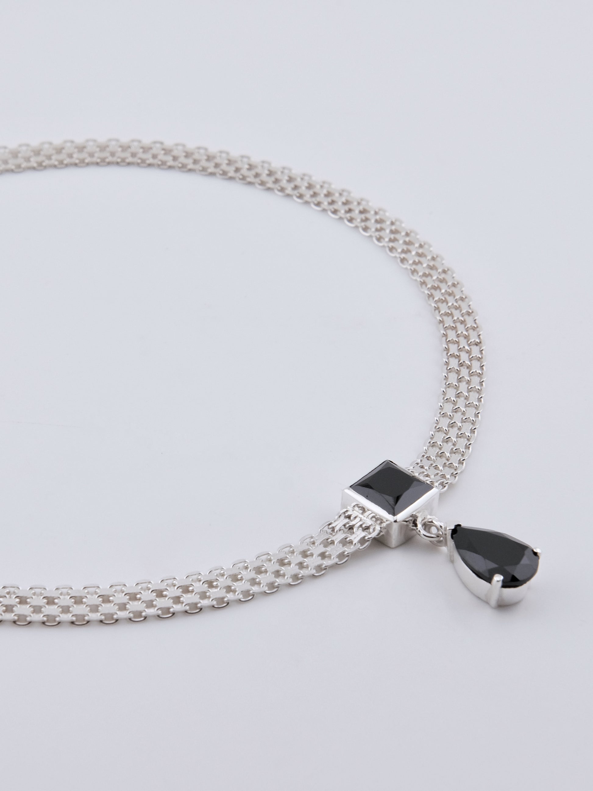 FIRENA Black Spinel Silver Necklace
