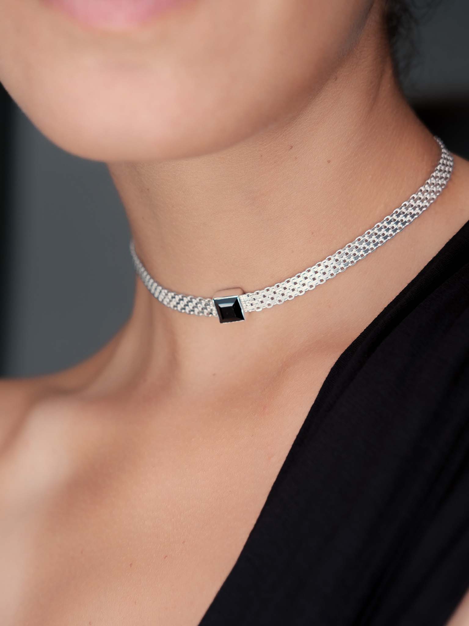 Elegant 925 Sterling Silver Necklace with Black Spinel stone. Completely Handmade in Bali.