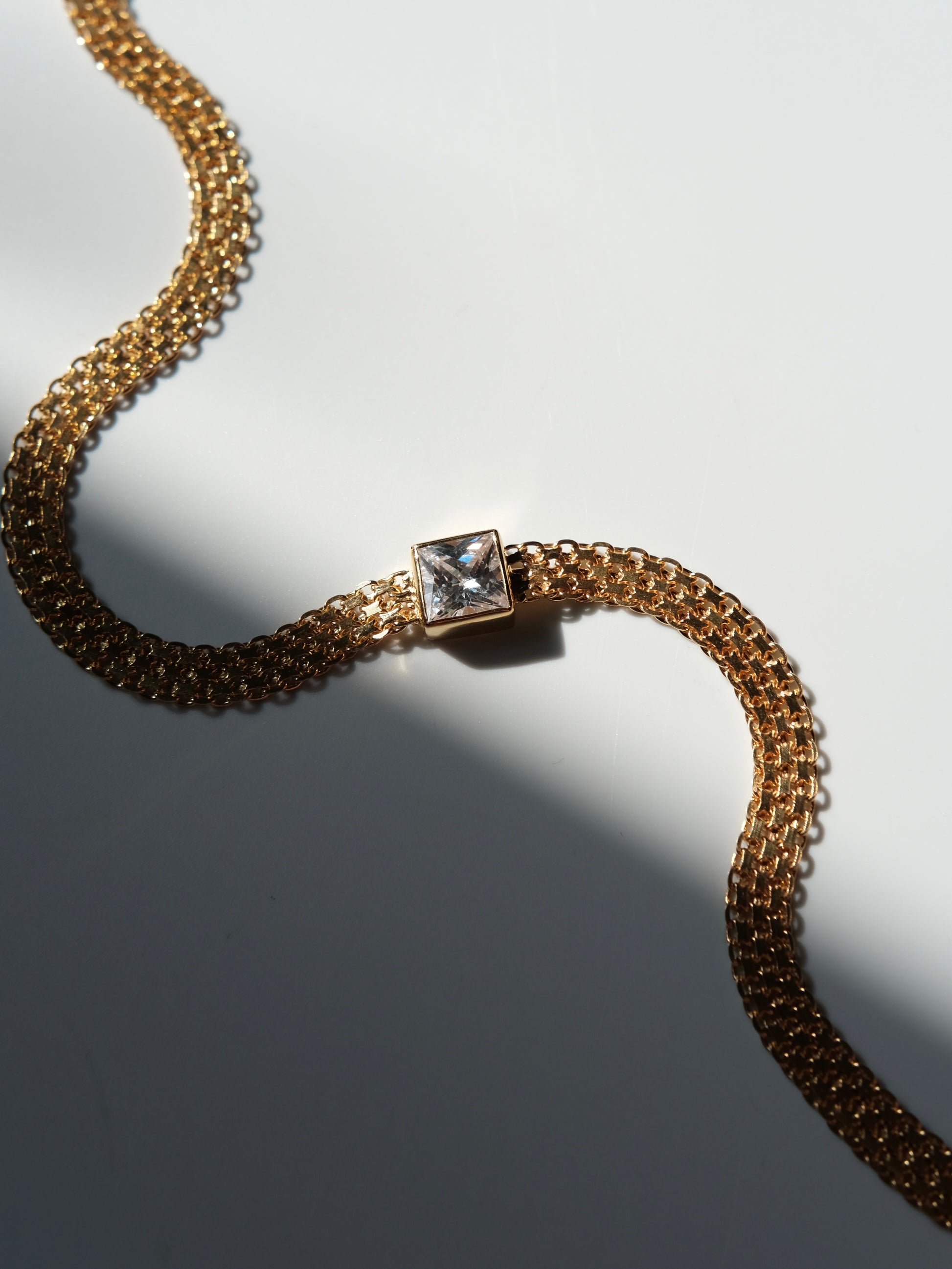 Elegant 925 Sterling Silver Necklace with Zirconia. Completely Handmade in Bali.