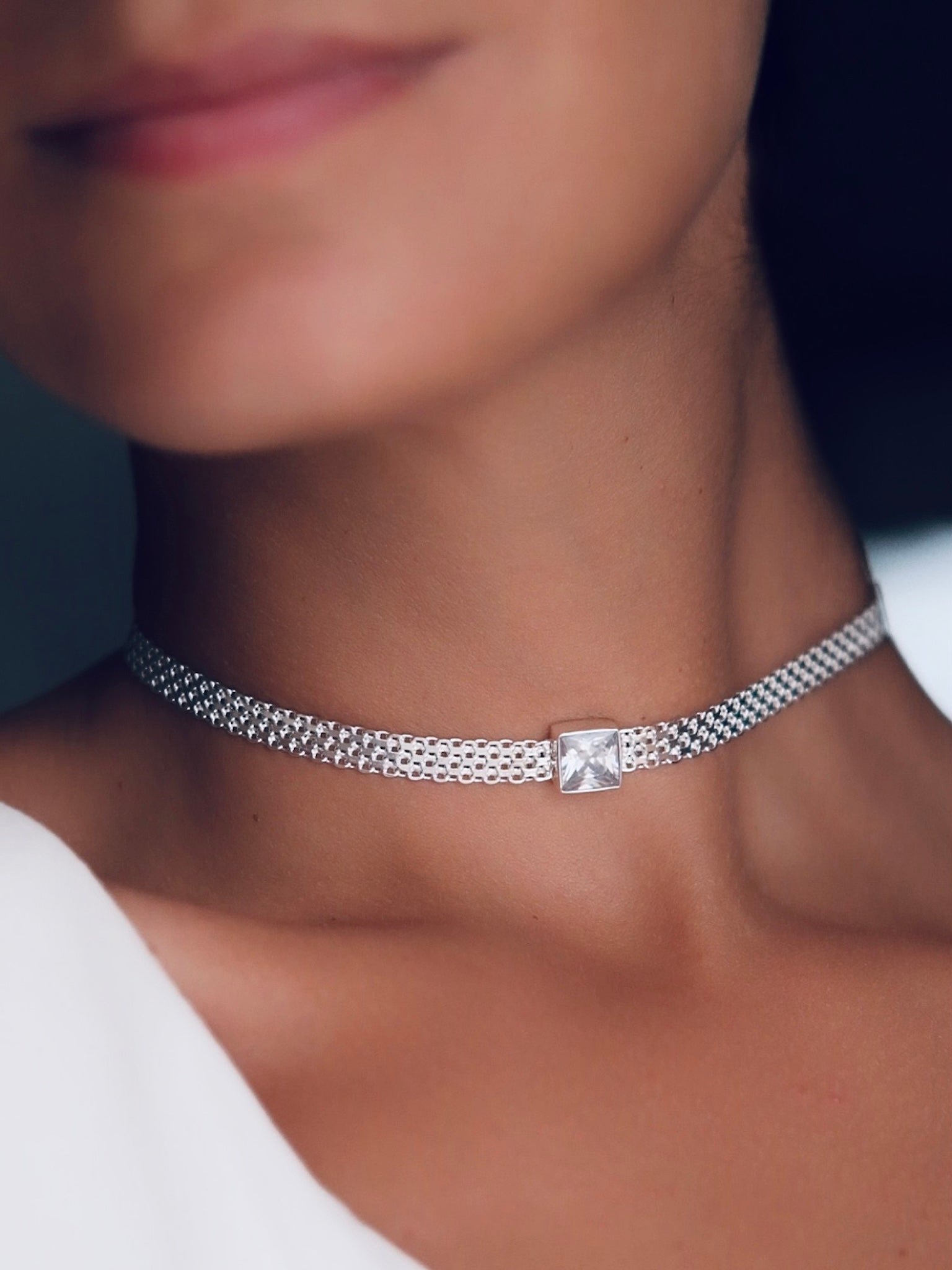 Elegant 925 Sterling Silver Necklace with Zirconia. Completely Handmade in Bali.