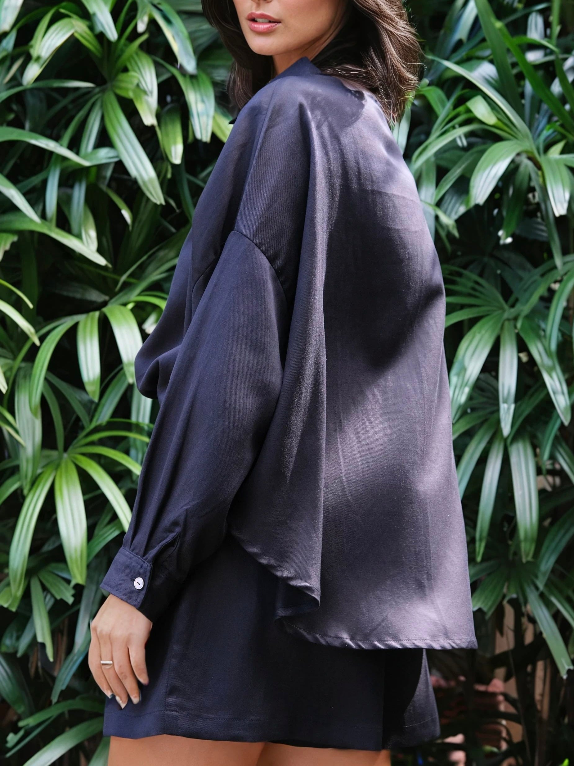 An elegant oversized linen shirt is a perfect addition to your summer wardrobe. Made from natural linen-cotton fabric, it feels soft against the skin, is lightweight, and breathable. The relaxed yet refined silhouette creates an effortless look, while the classic collar and cuffs add a touch of sophistication.