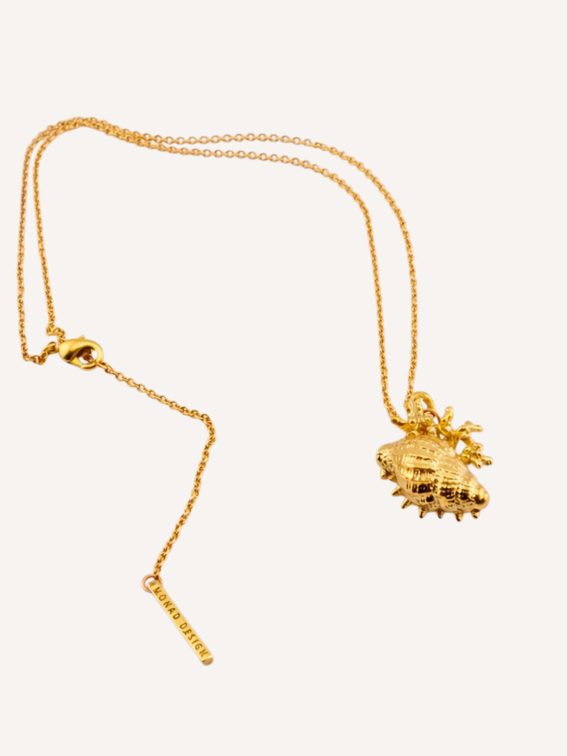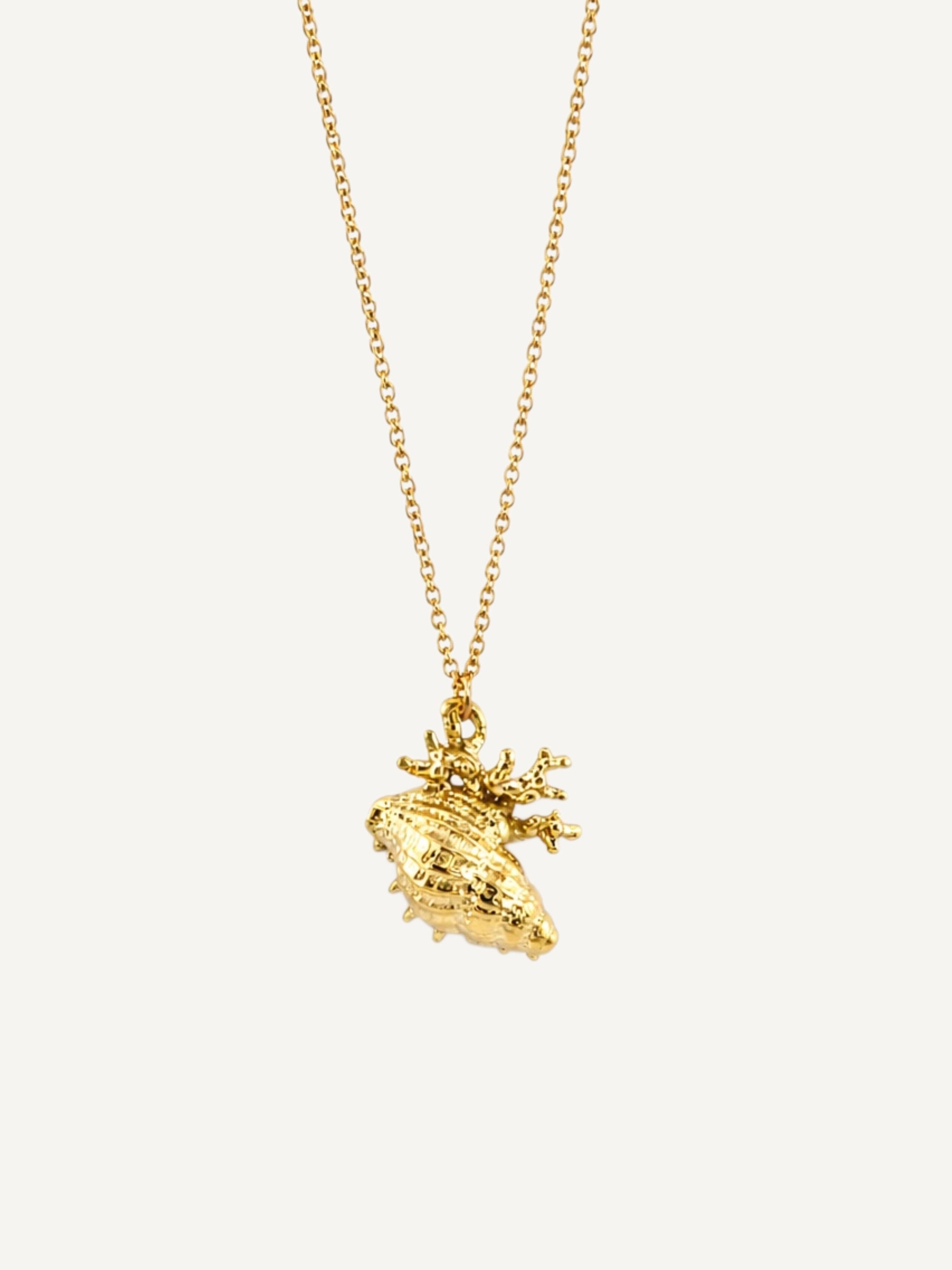 An elegant gold pendant in the shape of a shell, created from a cast of a natural seashell. Every line and curve precisely reflects the organic form, preserving the natural texture and effortless beauty of the marine motif.